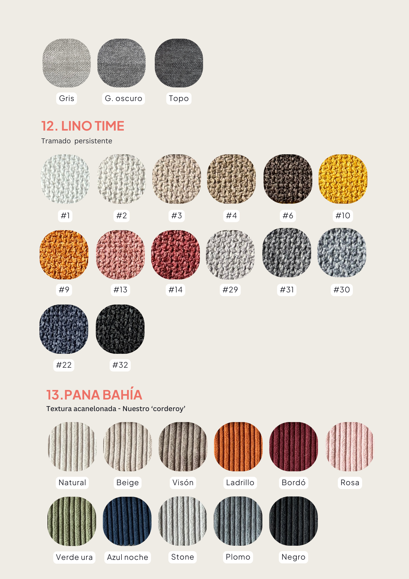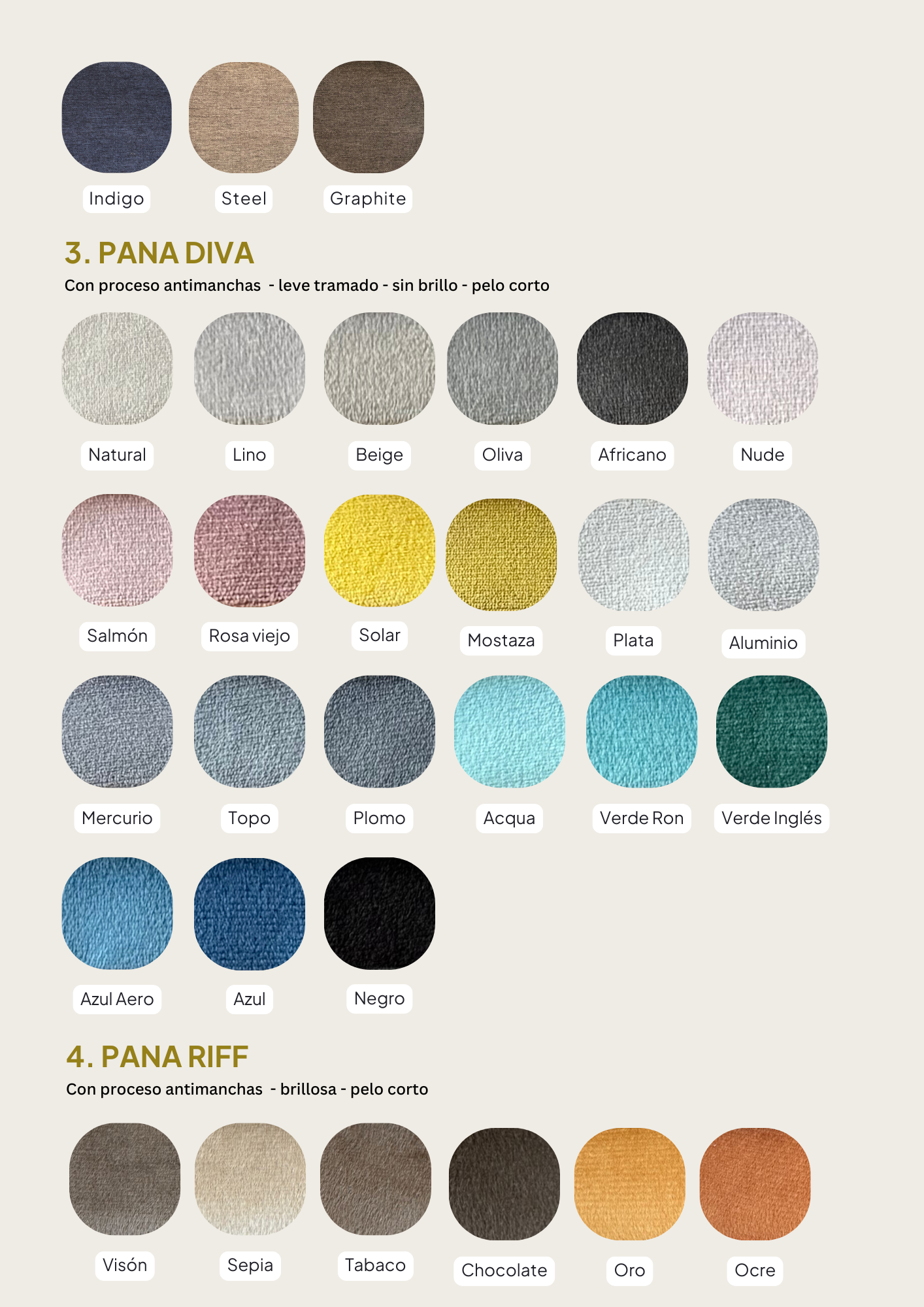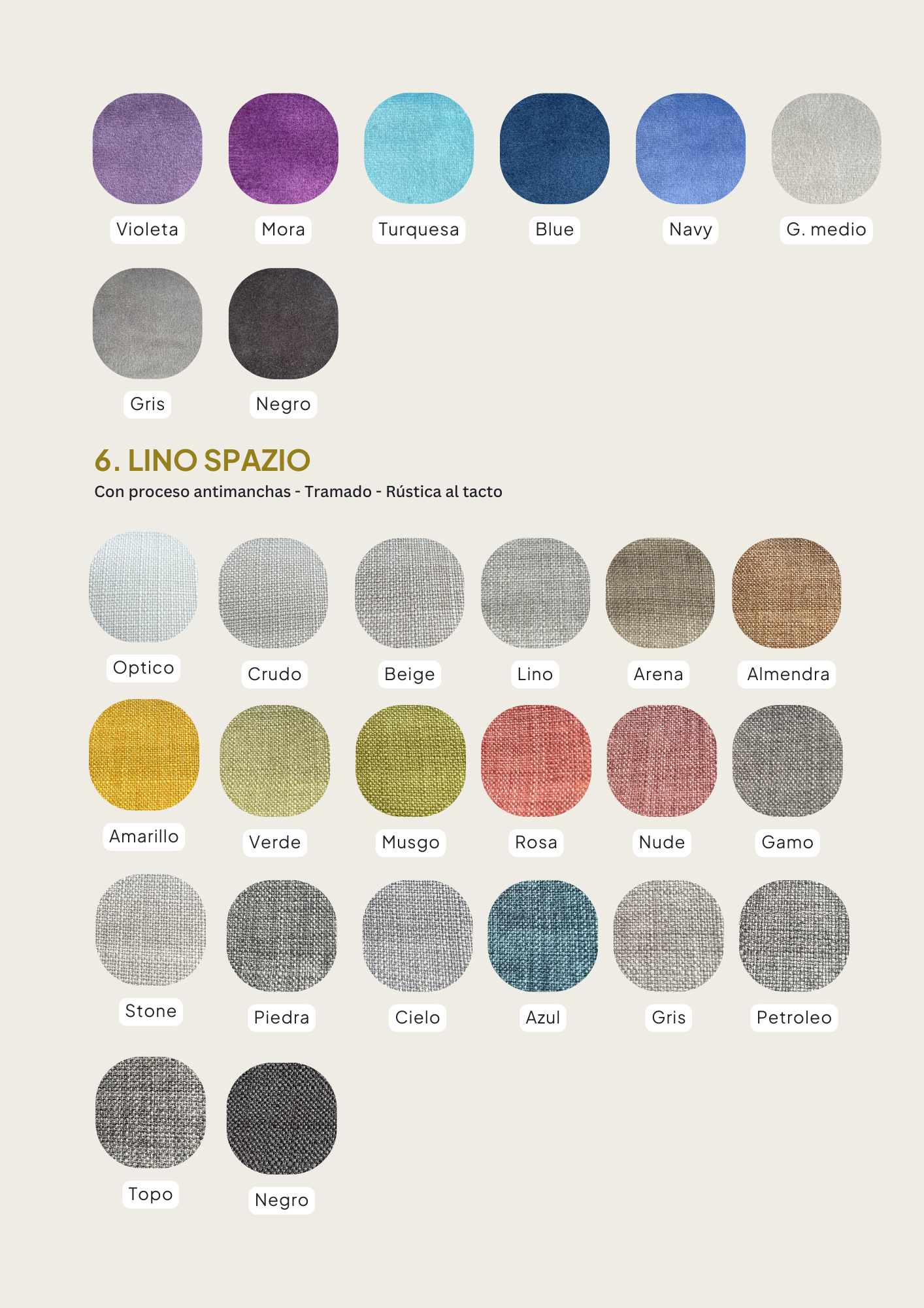 Todos nuestros sillones de la línea Trendy se pueden tapizar en los siguientes géneros, tené en cuenta que el precio base tiene incluída la categoría Stay Classy, si elegis un tono de la categoría Another Choice se suma un 5% a tu compra, y si elegís la categoría Keep Elegant un 8%.