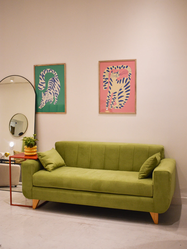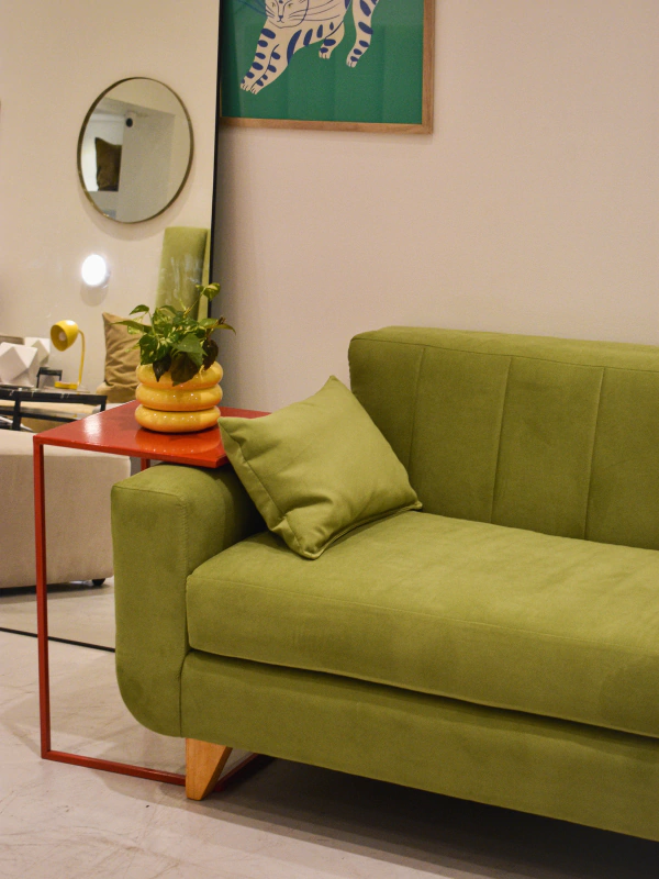 El asiento está compuesto por una placa soft de 26 kg de densidad. La estructura está construida con madera saligna de 1 pulgada, reforzada, encolada y amurada para garantizar durabilidad y firmeza. Las costuras están cuidadosamente realizadas con pespunte, cuidando todas las terminaciones.
