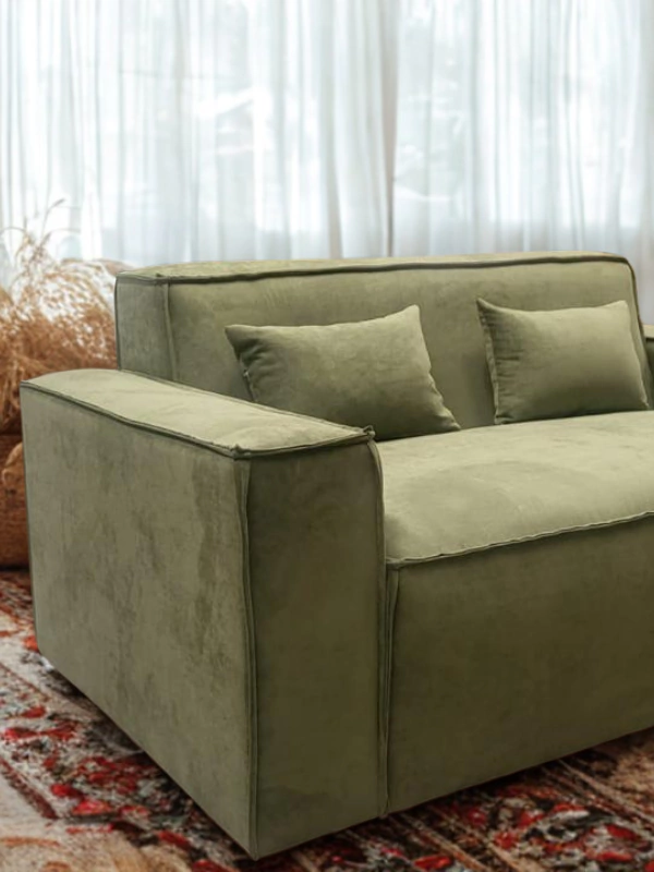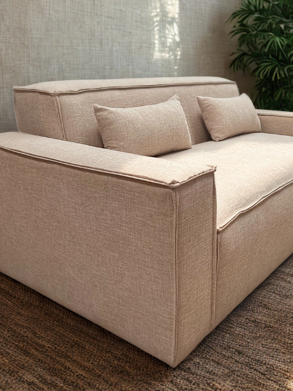 El West viene con dos almohadones decorativos que incluyen cierres para facilitar la remoción de las fundas. Las patas están equipadas con regatones de polipropileno de 2 cm.